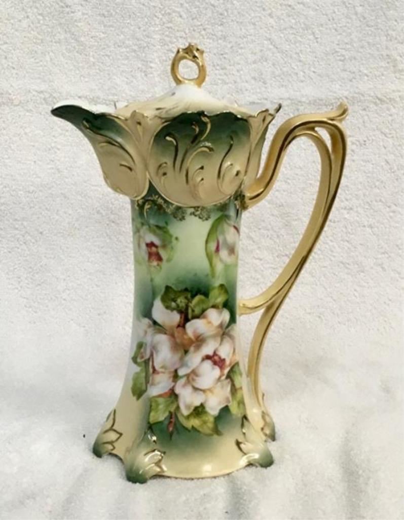R.S. Prussia Chocolate pot. 9 1/2" tall. Est:$100-200