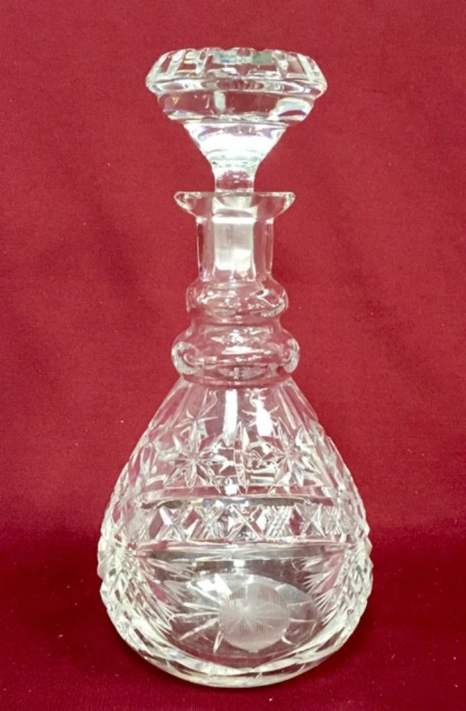 Cut glass decanter signed Libbey. Circa 1900. Est.:$100-$200.