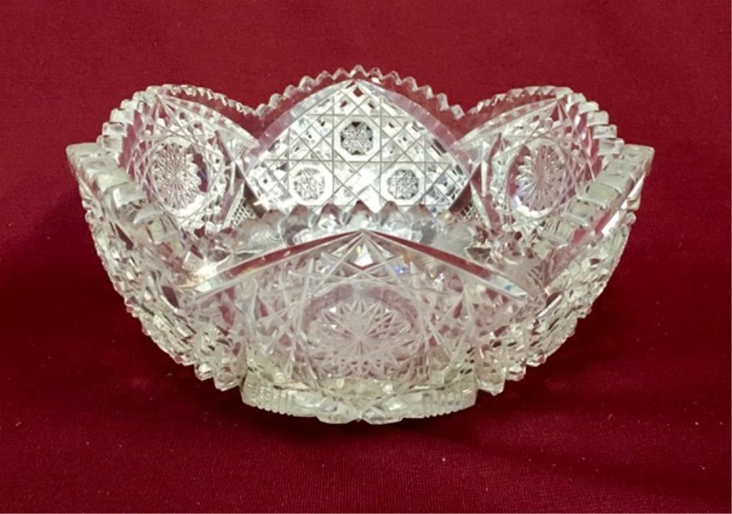 American brilliant cut glass bowl signed Hawkes 8" across Circa 1880a. Est.:$100-$200.