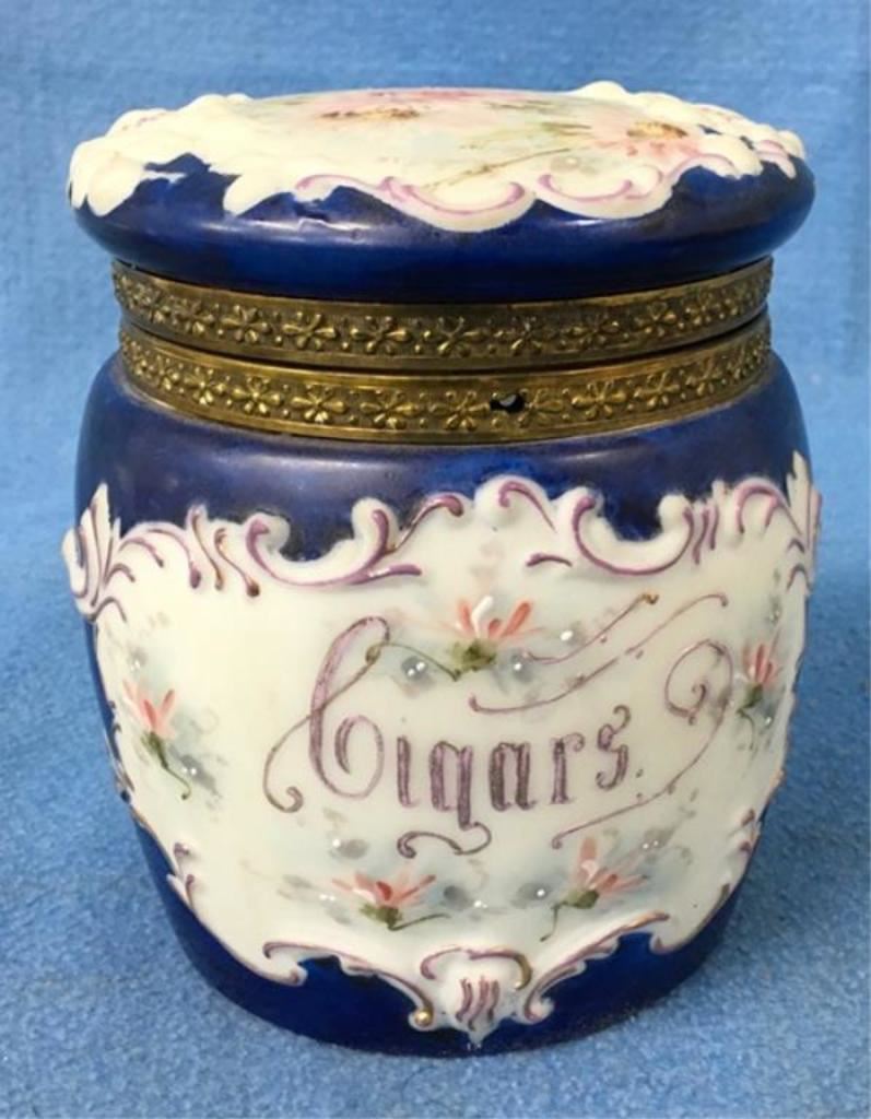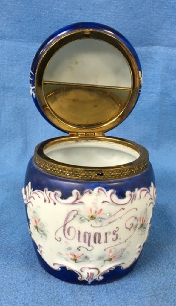 Wavecrest cigar humidor 6" T x 5" W. Circa 1890s. Est.:$400-$800.