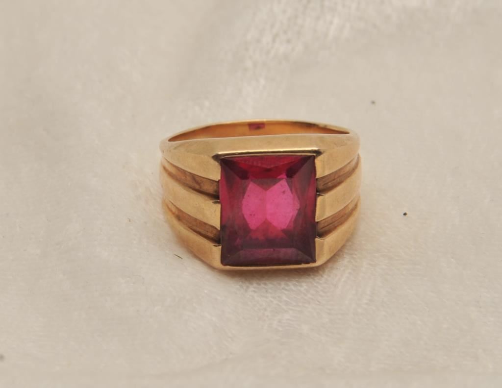 Vintage 1940's to 1950's Man's Rose gold colored ring. (10k-14k). Large red stone. Estate consigned. Est:$100-200