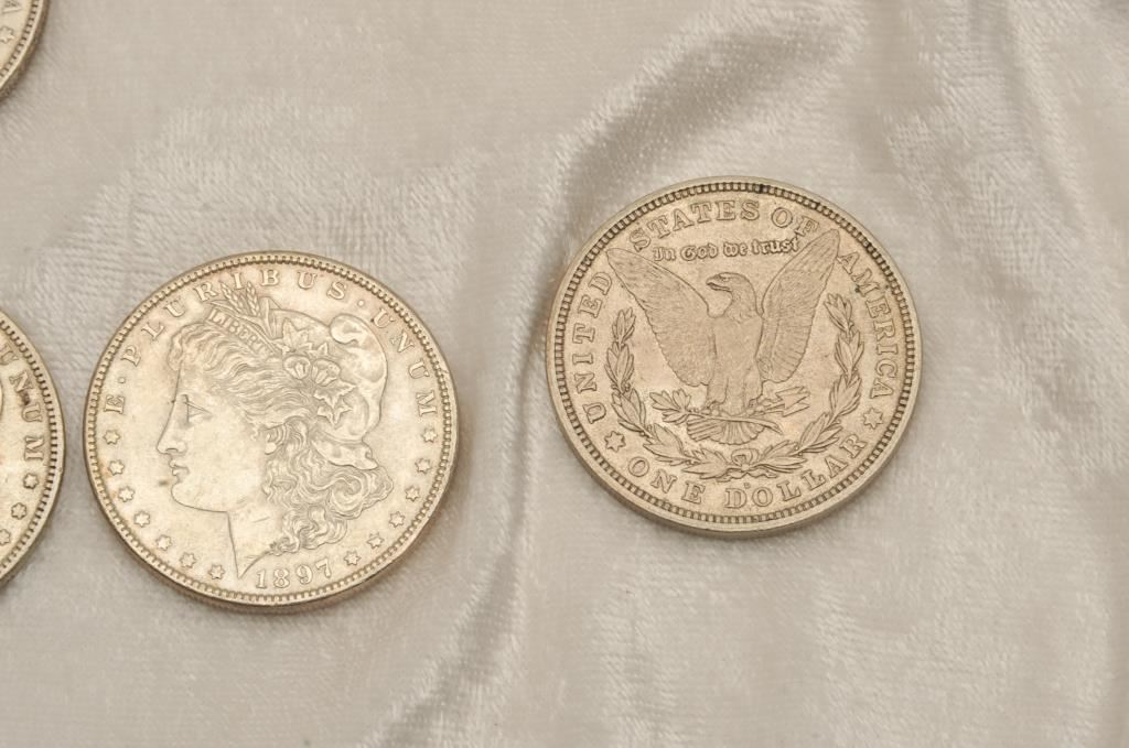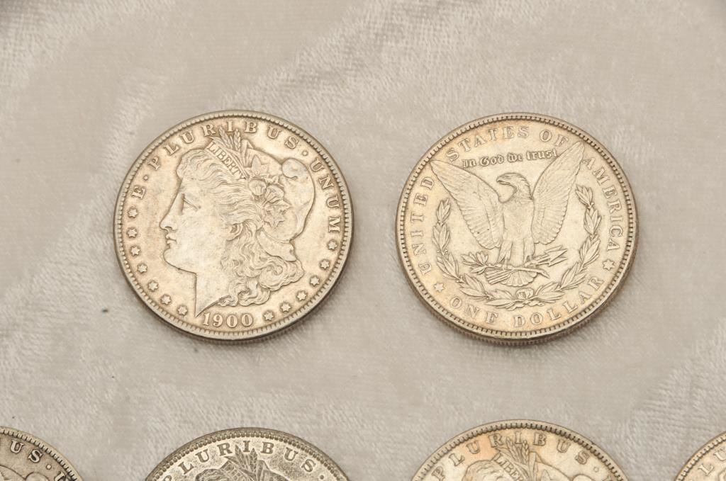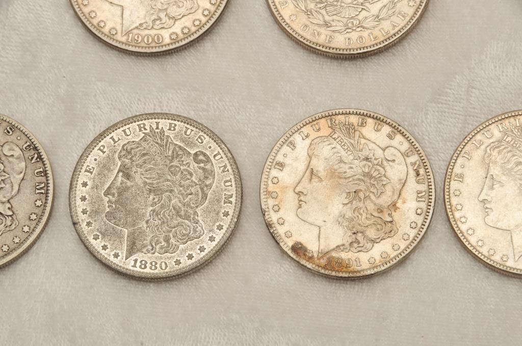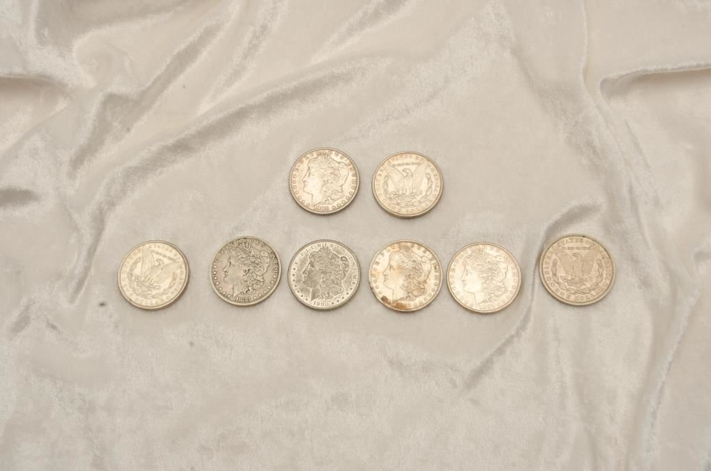 8-U.S. Morgan Silver Dollars, dates 1880-1900. About A-U, not professionally graded. Est:$120-240