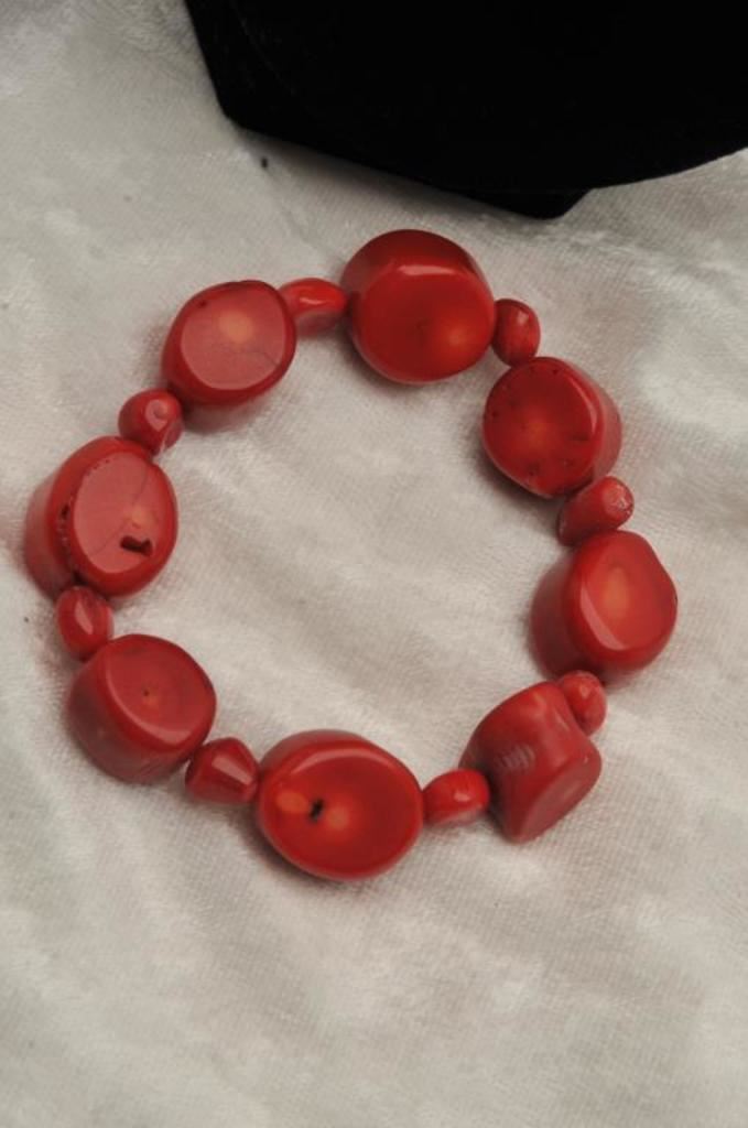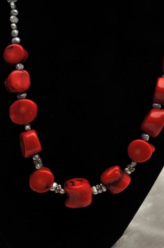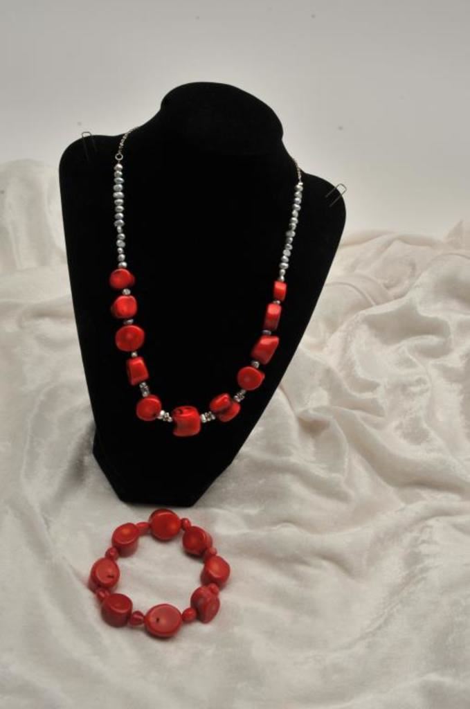 One unique natural polished coral beads (button shape)button and pearl necklace and bracelet Est:$100-200