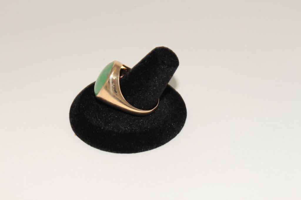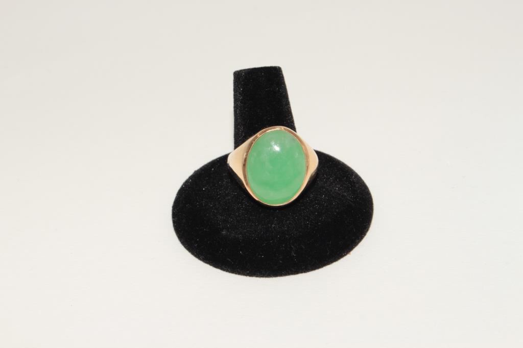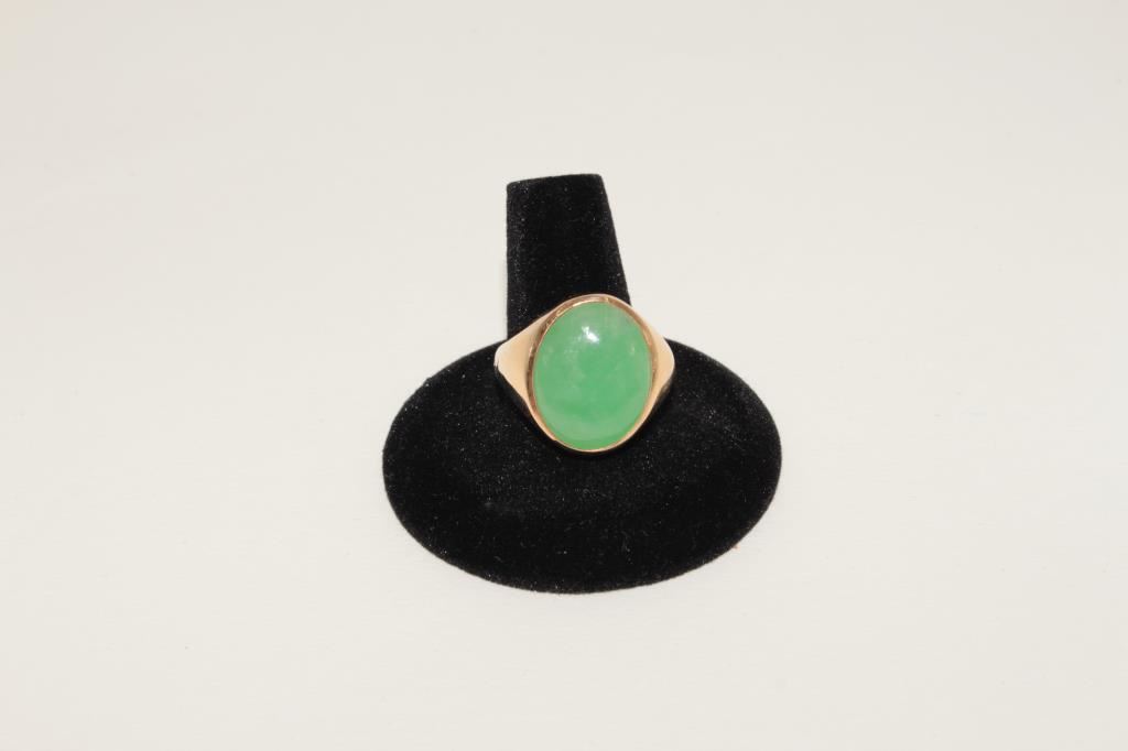 Natural apple green jade hand hammered 18k mounting maker signed and marked 18k. Est:$500-1000