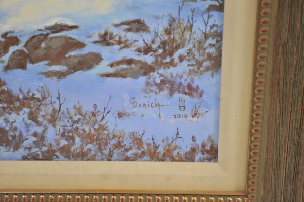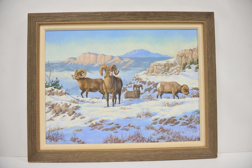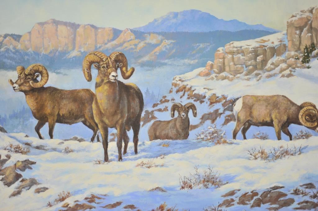 Large original oil painting entitled “Rambling Rams” by C. Dabich (2010); approximately 36” x 46” overall; finely accomplished. Est.: $1,200-$1,800.