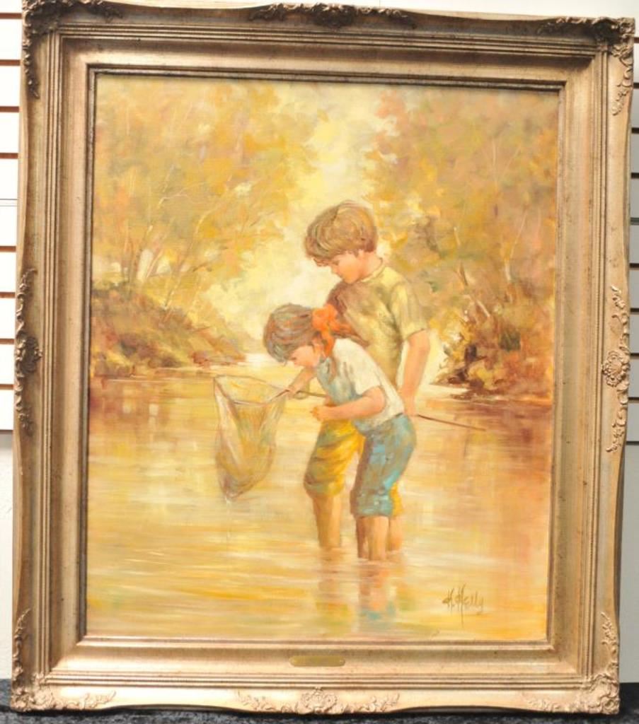 Original oil on canvas signed lower right “K. Kelly” (Kathy) and entitled “Early Catch”. Measures approximately 36” x 30”. Nicely framed with no condition issues. Est.: $600-1200