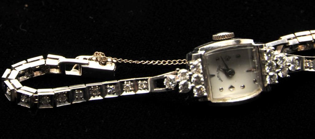 Ladies vintage Hamilton 14k and diamond wrist watch, mint condition, 1950-1960 vintage. Est $750-1500