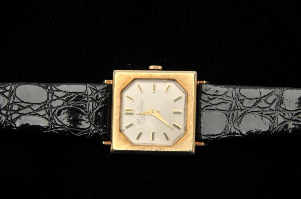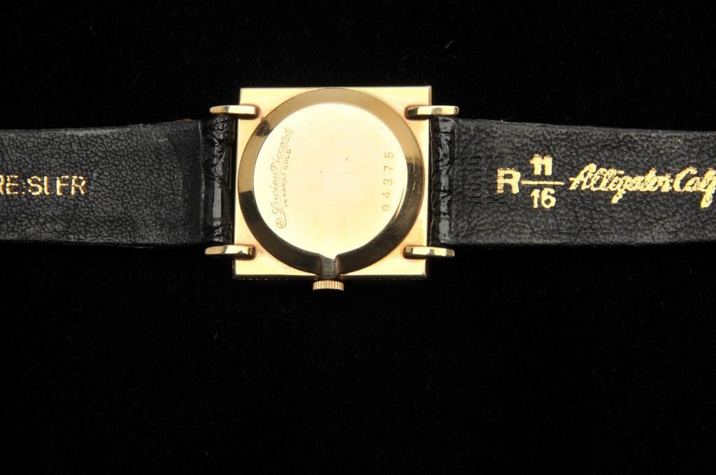 Mens 14k picture frame Lucien Piccard wrist watch in excellent condition. Est. $600-900