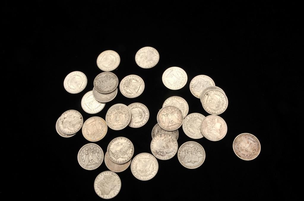 Lot of 30 Morgan silver dollars. Est. $500-1000