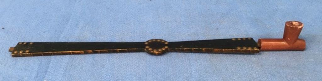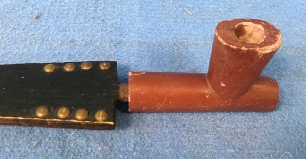 Native American Indian clay pipe with brass tacked stem. Est.:$800-$1,000.