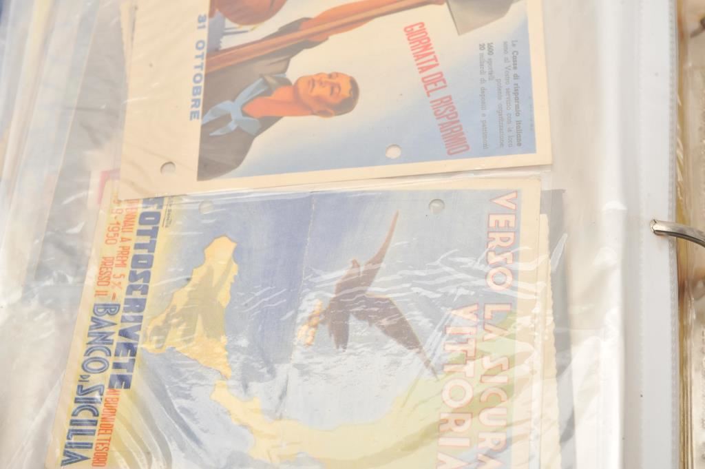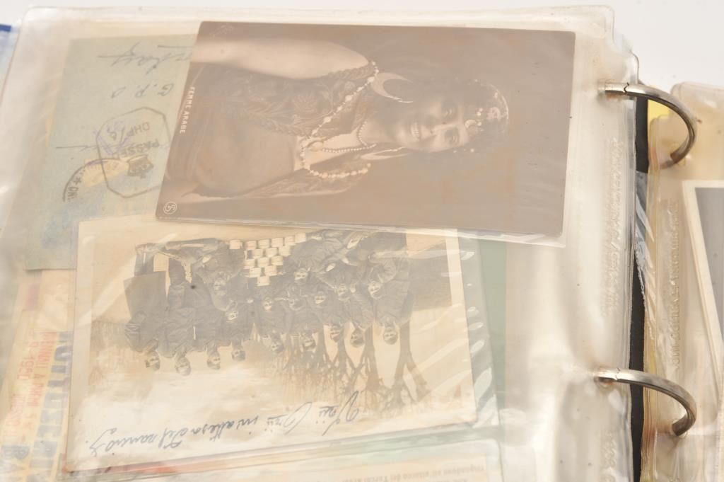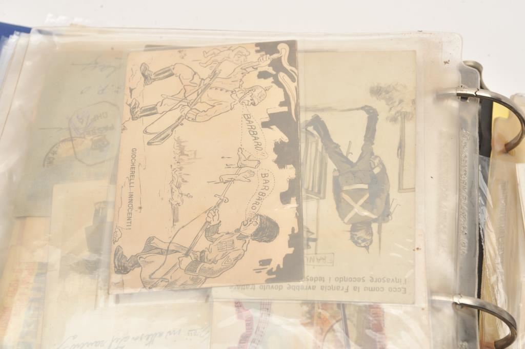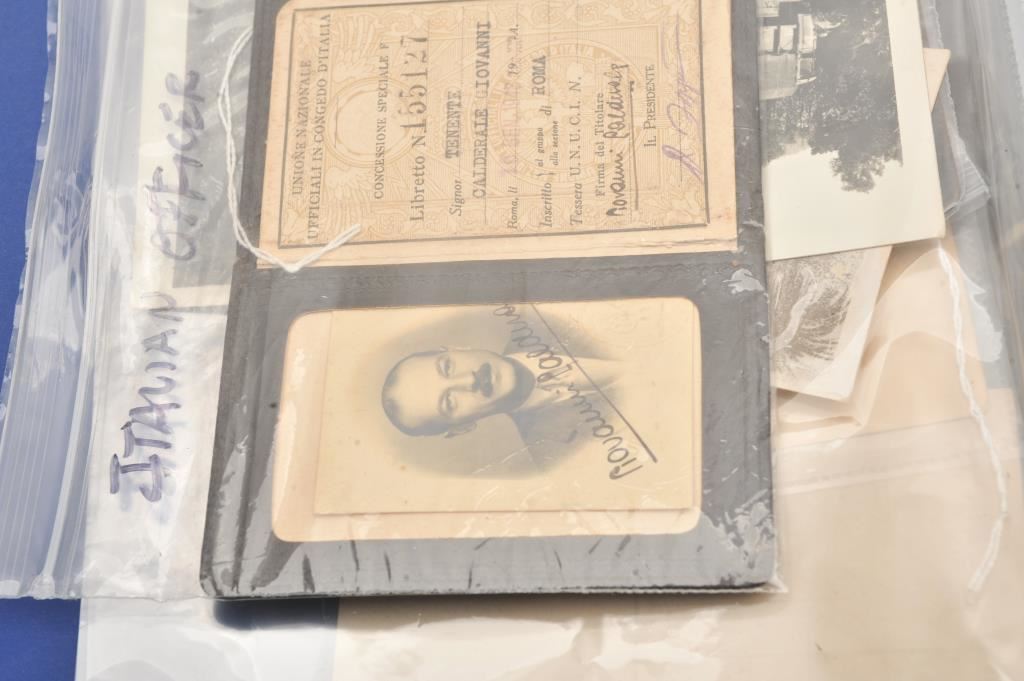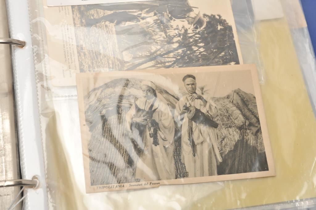Italians WWII collection of combat photos showing Italians in Ethiopia along with post cards, fighter photos with German mechanics stamp, Africa Corps, documents, and large 3 ring binder. Est.: $150-$300