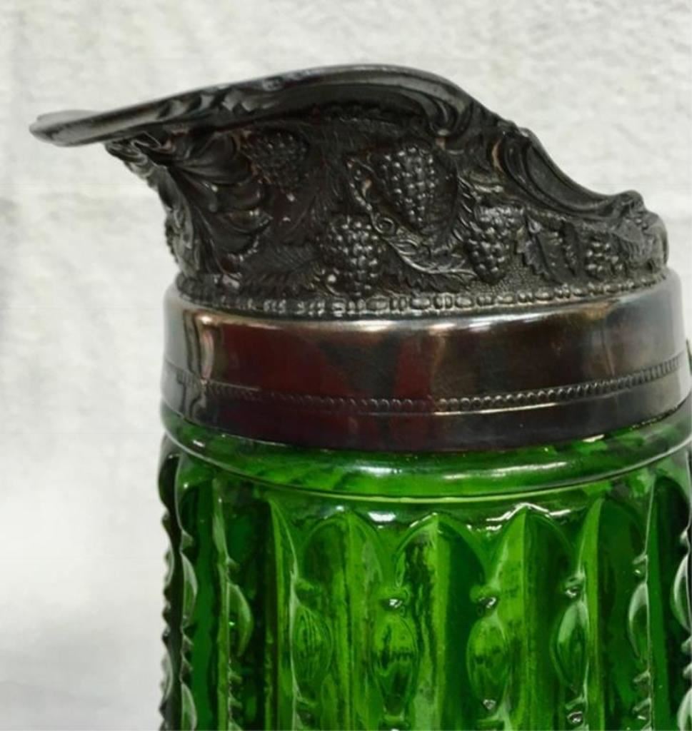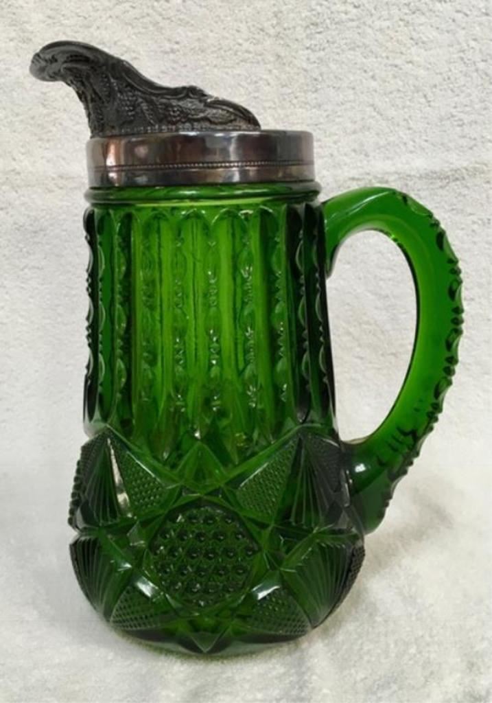 Early American pattern glass tankard with silver top. 10" tall. Est:$100-200
