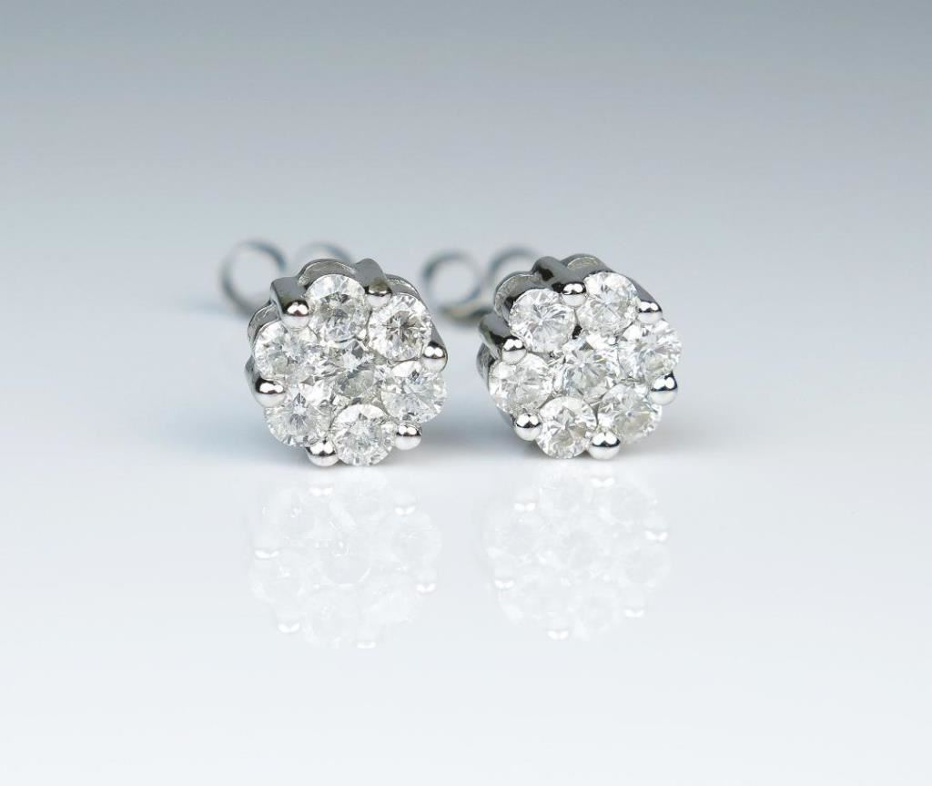 Dazzling ‘IDEAL’ cut Diamond Earrings featuring 14 round cut Diamonds weighing approx. 1.00 carat total weight with F-G colors and VS/SI clarity set in 14 karat white gold settings. Retail $2,000-$3,000 Estimates $1,200-$1,800