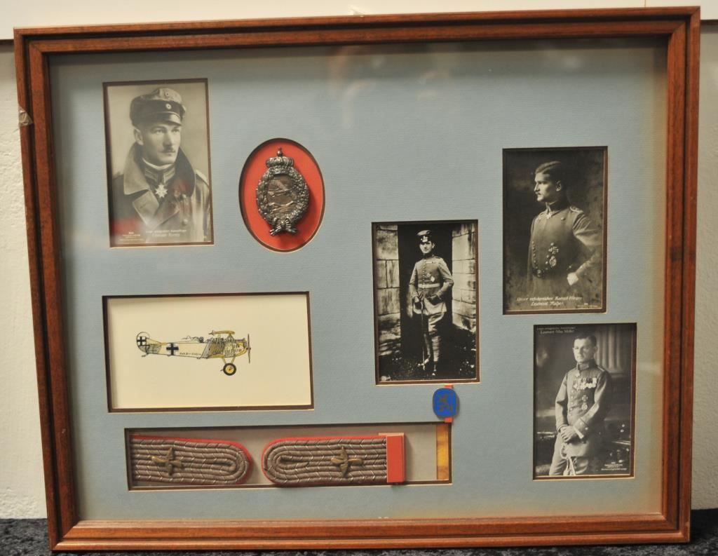 German pilot’s badge and aviation shoulder boards with other items for display. Est.: $175-$350