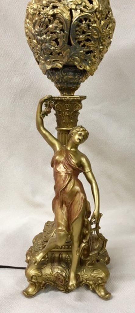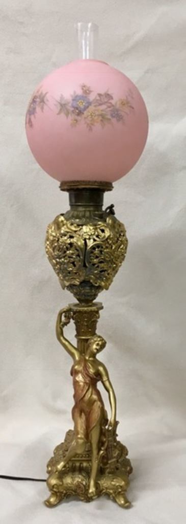 Fantastic Victorian figural banquet lamp. Circa early 1900s. 34" tall. Est.:$500-$1,000