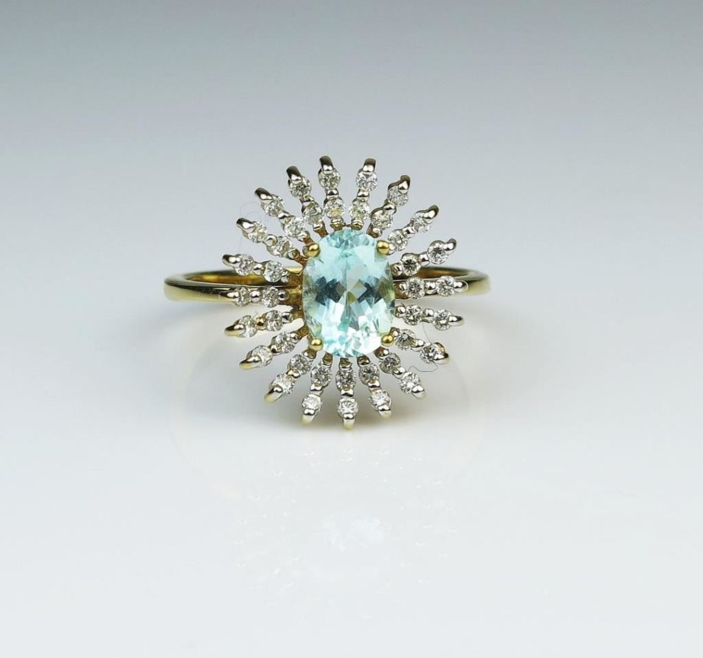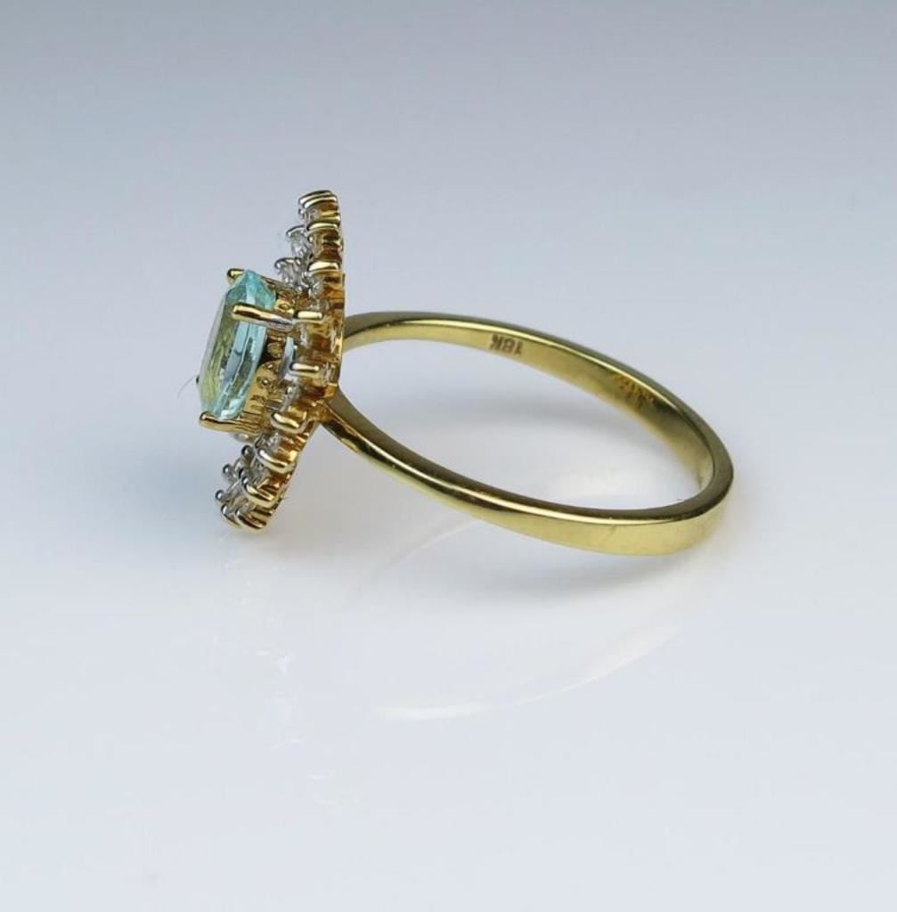 Bright and Beautiful Paraiba Tourmaline and Diamond Ring featuring an approx. 0.80 carat Paraiba with a dazzling circle of 40 full cut Diamonds with H-I colors and VS clarity set in 18 karat yellow gold. Retail $2,000-$3,000 Estimates $1,000-$2,000