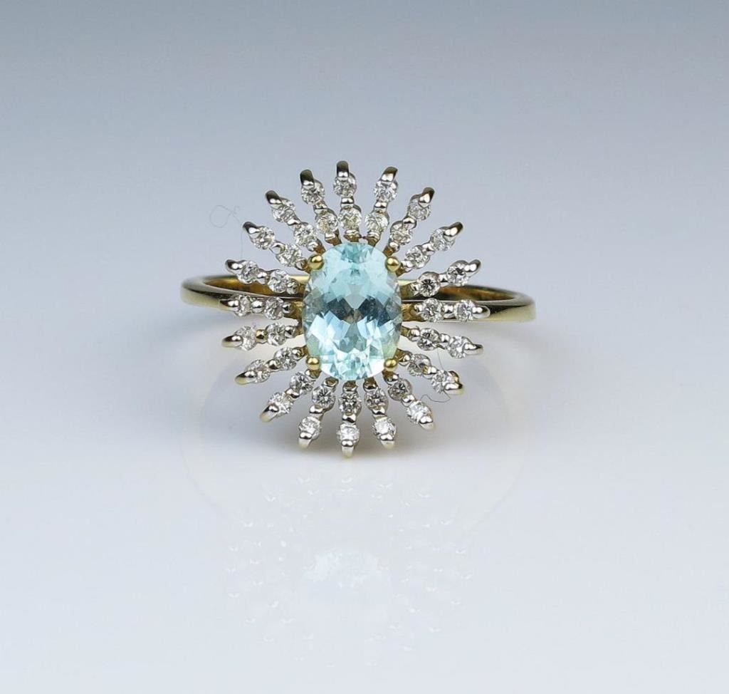 Lot 1730 19CAI-44 PARAIBA TOURMALINE DIAMOND RING