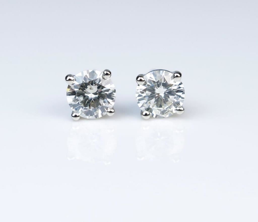Glittering ‘IDEAL’ cut Diamond Earrings featuring 2 Diamonds weighing 0.80 carats total with G-H colors and SI clarity set in 14 karat white gold settings. Retail $2,000-$3,000 Estimates $1,500-$2,000