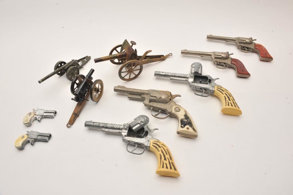 Vintage toy guns and cannons. 10 pieces. Various ages and conditions. Est.: $100-$200