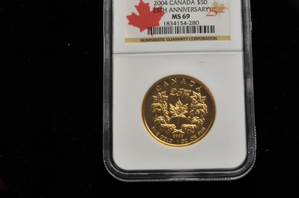 Canadian gold $50 25th anniversary in NGC slab. MS 69. Estate consigned. Est.: $1200-$1600