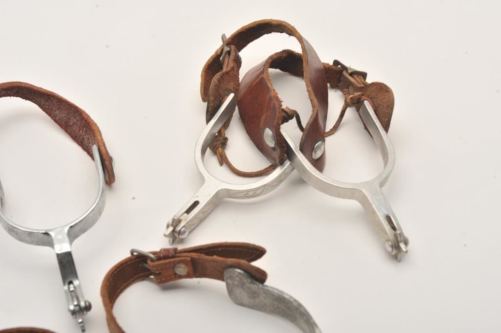 3 pair of spurs with straps. Good condition. Est.: $75-$150