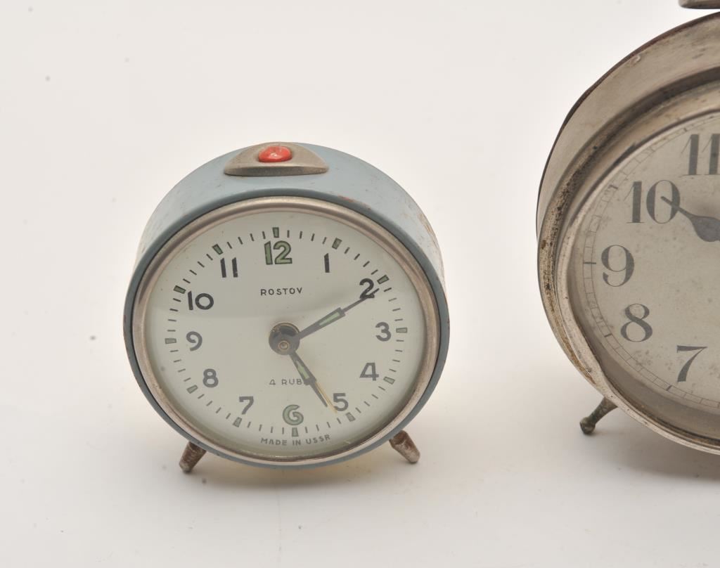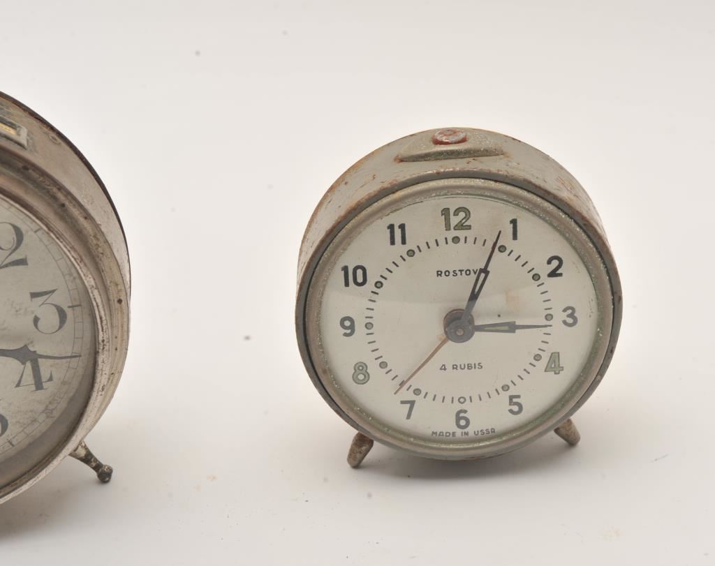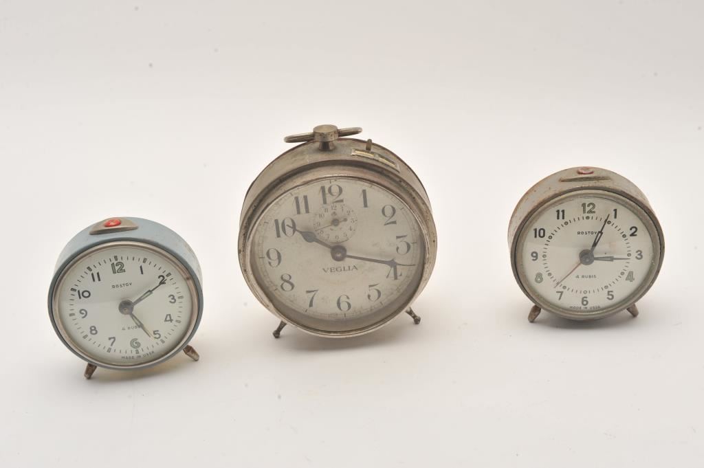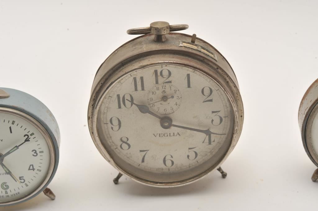 Vintage alarm clock collection. Italian and Russian. Varied ages to 1940’s. As found. 6 total. Est.: $150-$300