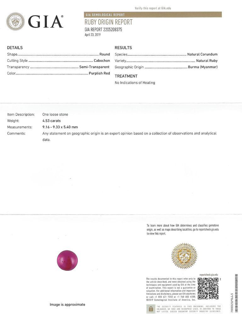Incredibly RARE 4.53 carat BURMESE RUBY and Diamond Ring with Full GIA REPORT featuring a 100% NATURAL Ruby - NO HEAT NO TREATMENT accented with 32 ‘IDEAL’ cut Diamonds weighing approx. 2.00 carats with F-G colors and VS clarity set in beautifully crafted two tone 14 karat gold setting. Retail $20,000-$30,000 Estimates $12,000-$18,000
