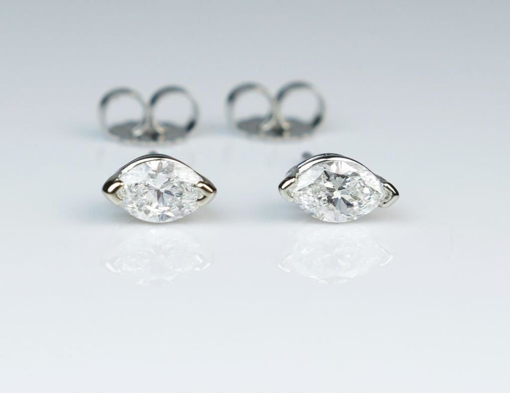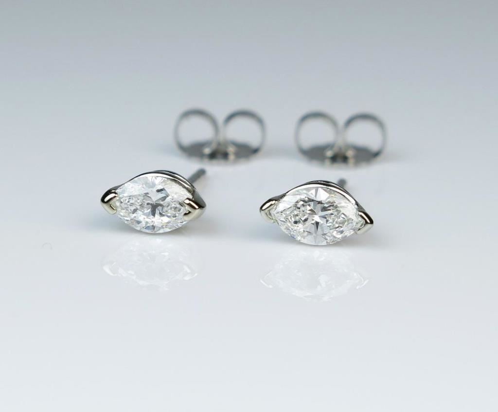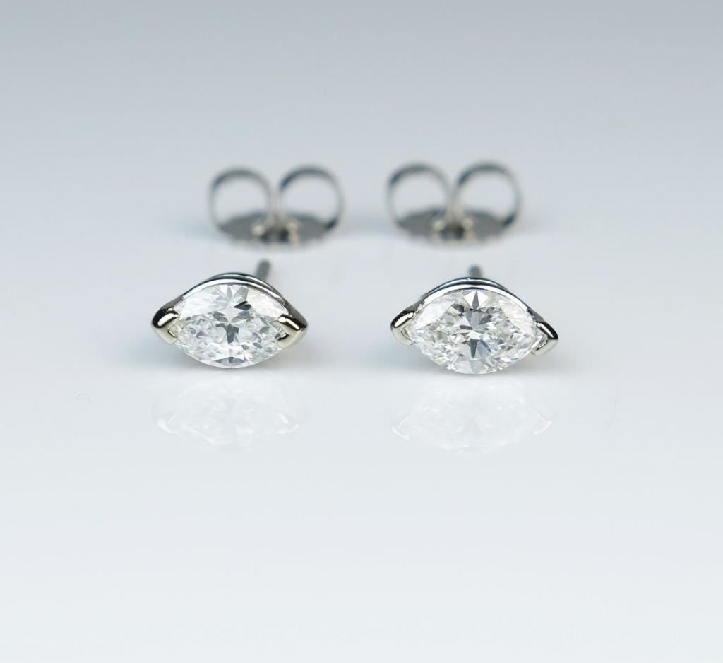 Radiant Diamond Earrings featuring two matching marquise cut Diamonds weighing approx. 0.65 carats total with F-G colors and VS/SI clarity set in 14 karat white gold settings. Retail $2,000-$3,000 Estimates $1,500-$2,000
