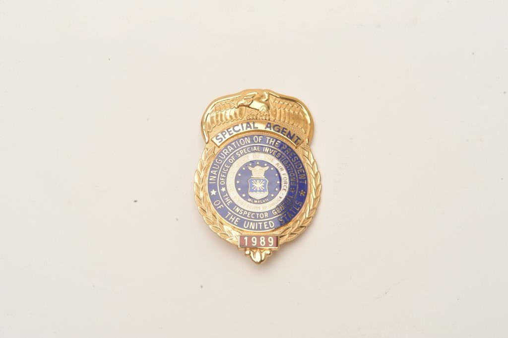 Office of Special Investigations/The Inspector General Special Agent Commemorative inauguration of the President badge (1989); (hallmark Blackinton/stamped 235 on reverse). Est.: $150-$300.