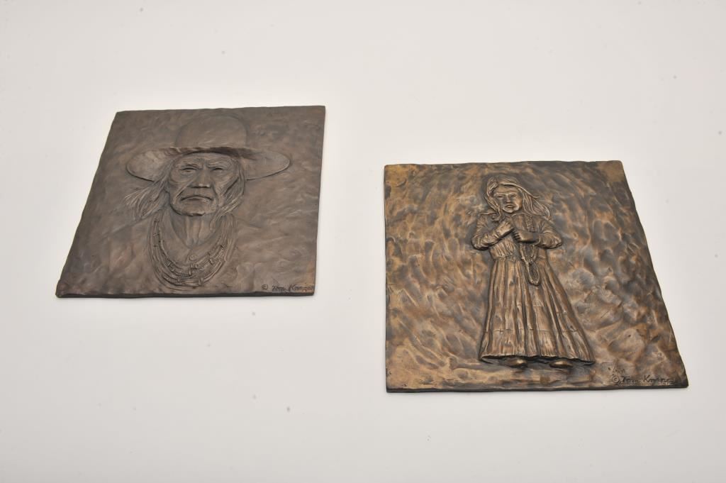 Pair of bronze plaques of Western themes, signed Tom Knapp (#5 of 1,000). From the estate of Elmer E. Taylor. Est.: $175-$350.