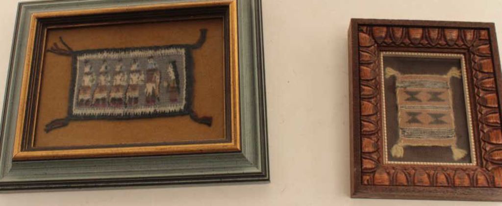 Two miniature pictorial rugs of Yei dancers framed. Collected pre-1972 by Elmer E. Taylor. From the estate of Elmer E. Taylor. Est.: $250-$500.