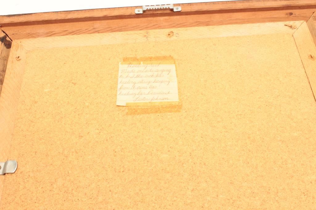 Two original sand painting of “Healers”; one “Healing People” by illegible signed on reverse and another, “Healing God” by Lester Johnson; (1960s to 70s); each approximately 16.75” x 16.75”. From the estate of Elmer E. Taylor. Est.: $150-$300.