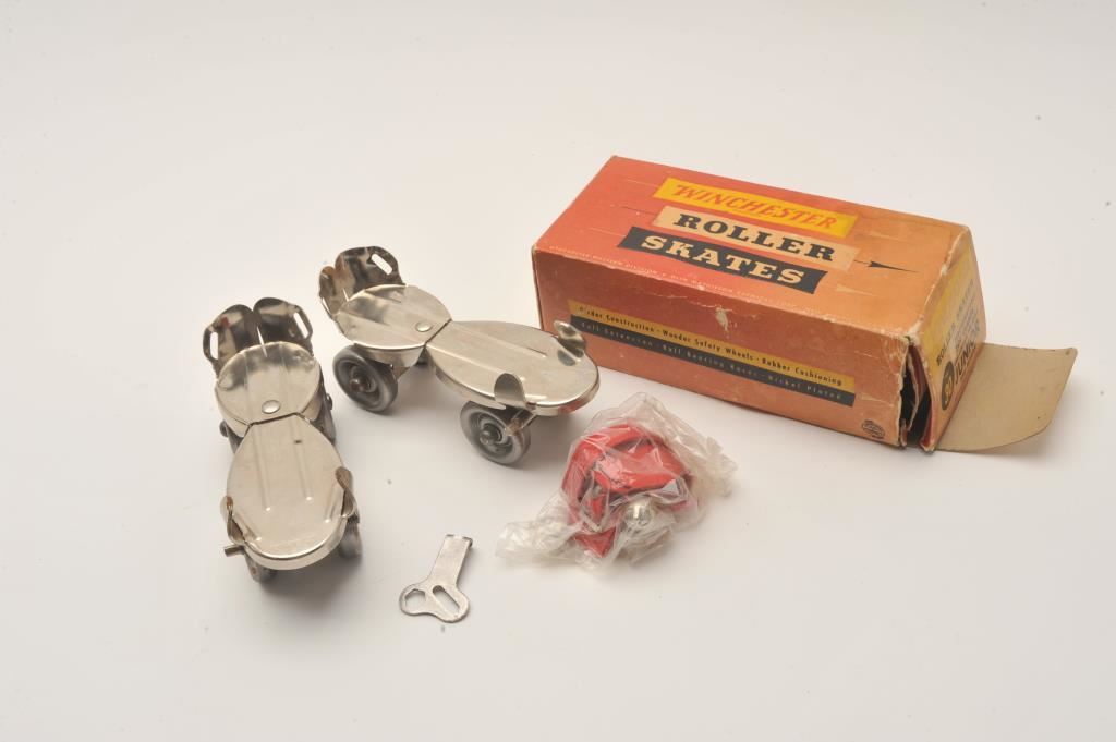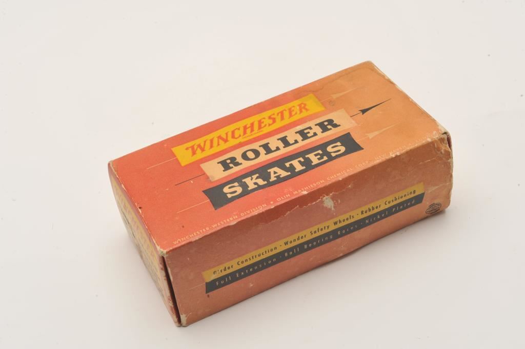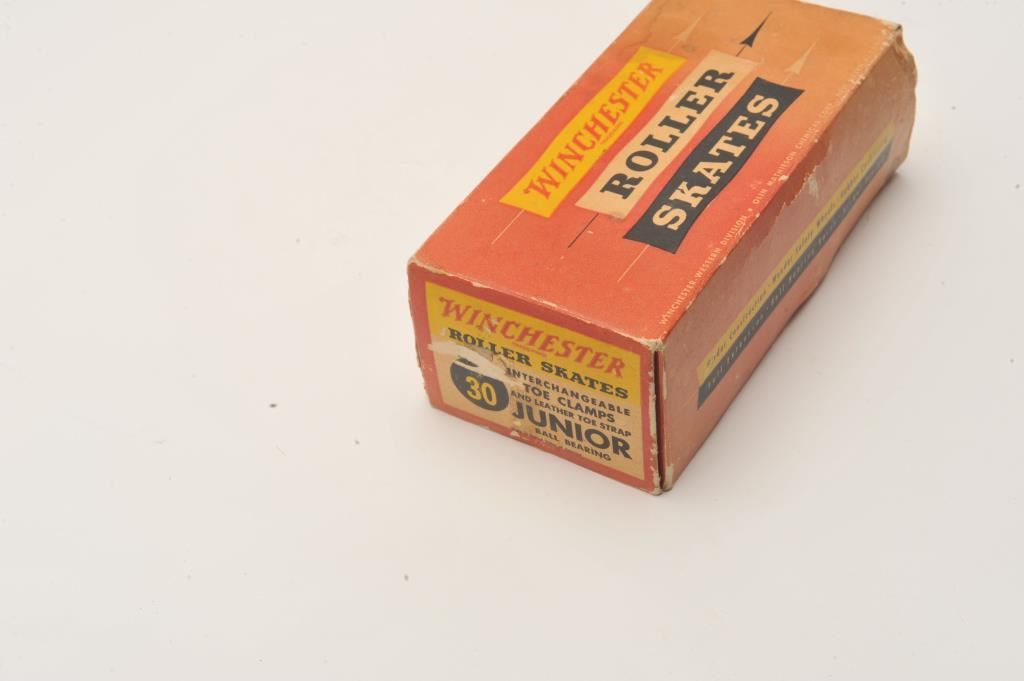 Pair of Winchester No. 30 roller skates in factory cardboard box. Est.: $75-$150.