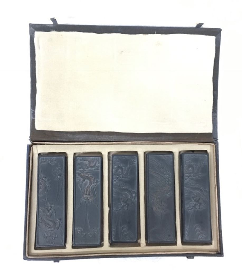 Set of 5 unique old Chinese Ink Sticks of the finest Quality in the original box. Est:$ $200-300
