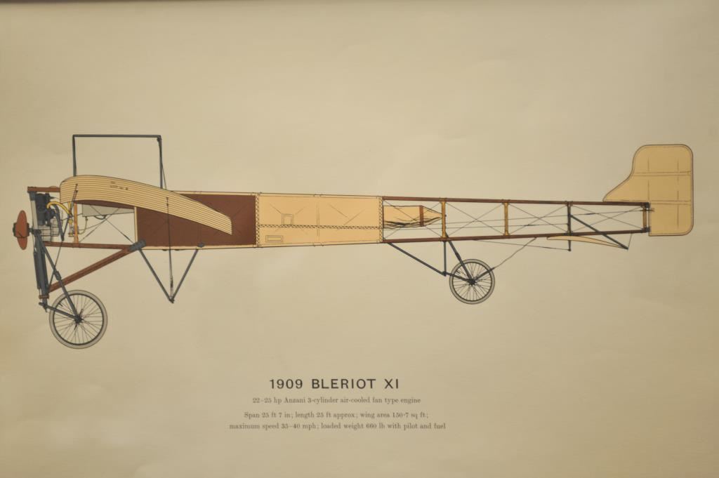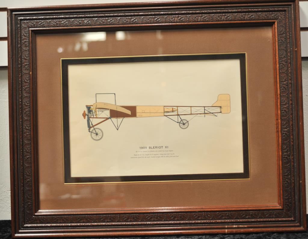 Lot of 2 beautifully framed and matted large color prints, one of a 1909 Bleriot XI plane, approximately 23” x 30” overall and a 1909 Antoinette plane, approximately 23” x 30” overall. From the Bill Bettis Nieuport 17 Restaurant collection. Est.: $200-$400.