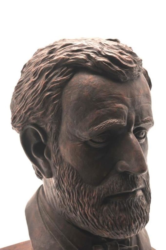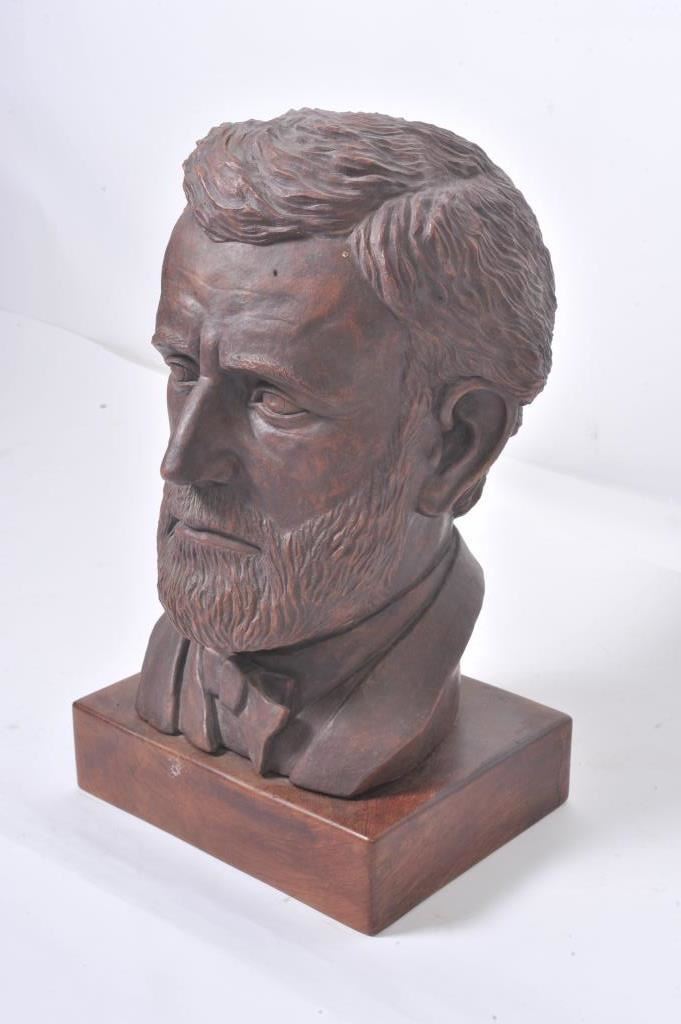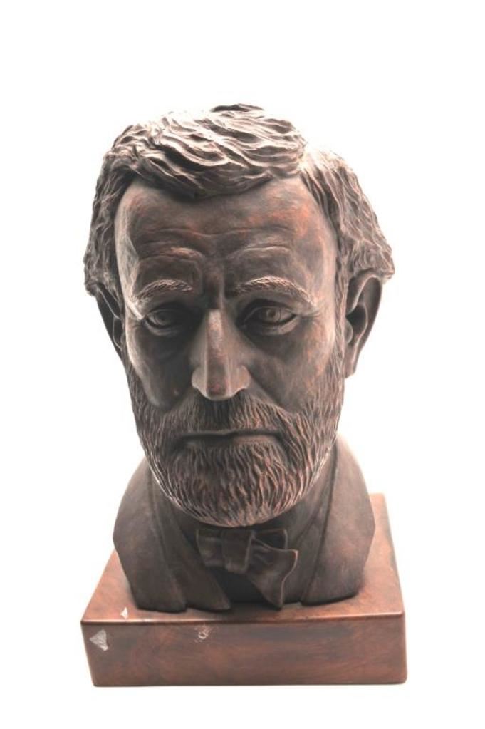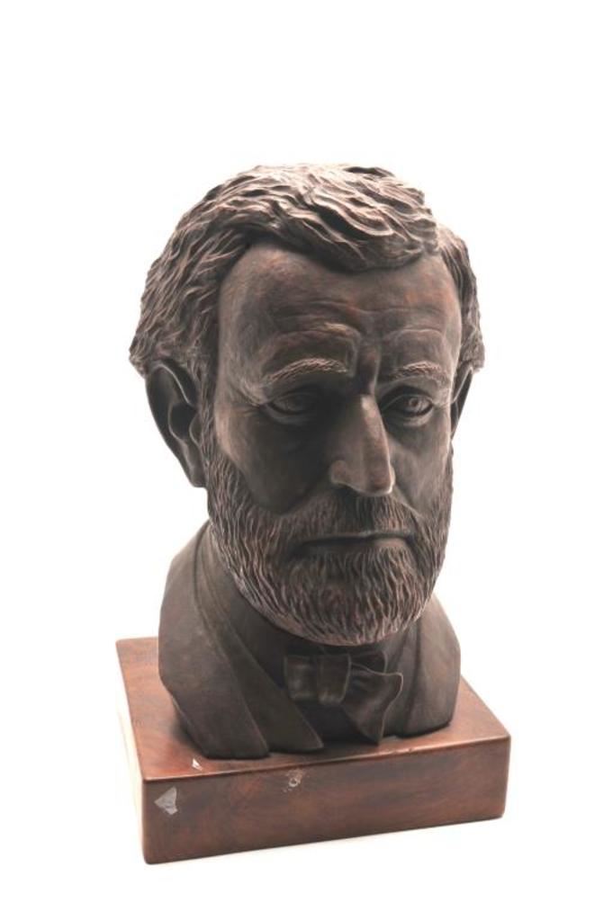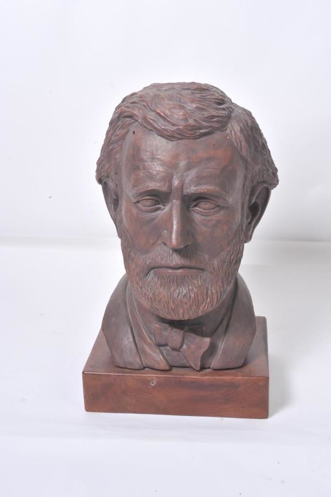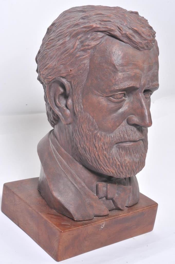 Large finely accomplished original terra cotta sculpture bust of President U.S. Grant, approx. 18" in height, 12" in width and 12" deep, mounted on a block stand of exotic hardwood; the piece is signed "Robert Ortlieb" and would display beautifully in an office, library or gunroom. Est.: $250-500