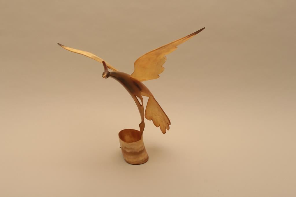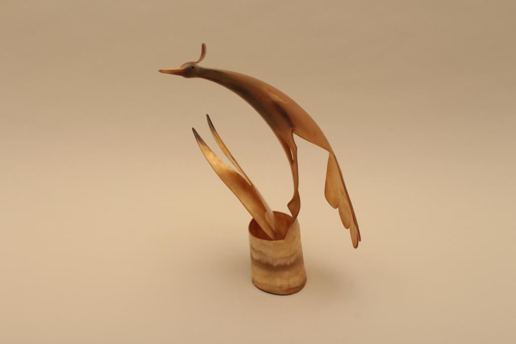 Lot 2025b 18KO-36 FOLK ART 19TH CEN. CARVED HORN BIRD