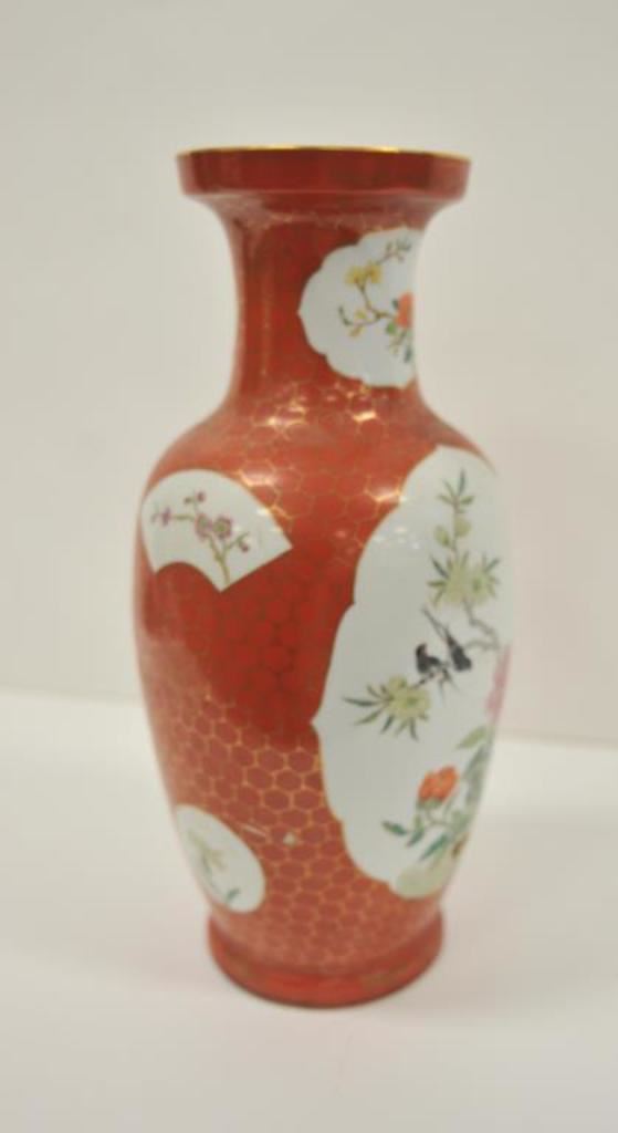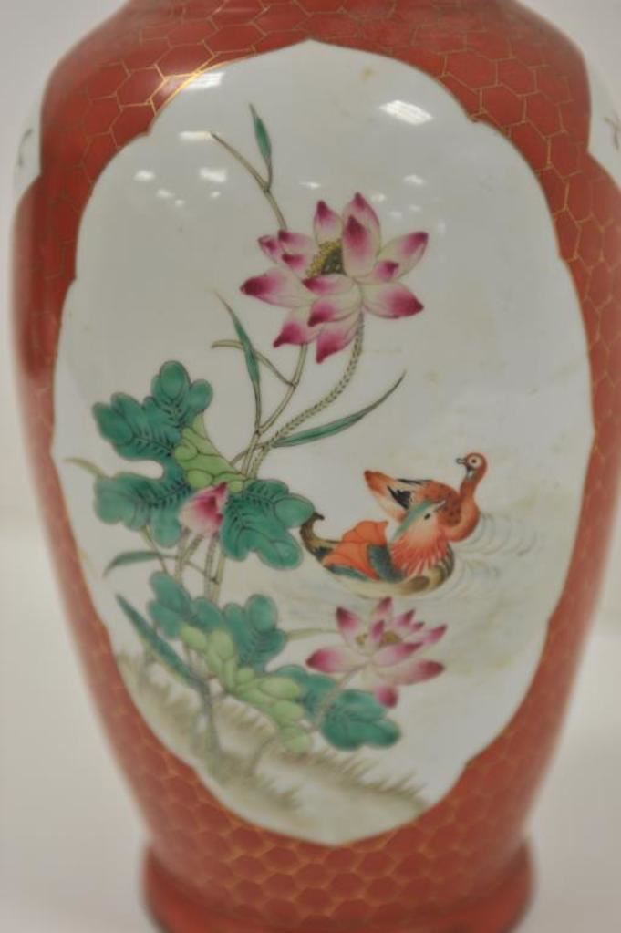 Large porcelain painted Chinese vase with birds, ducks and flowers, approximately 18” in height; 19th Century or earlier; good overall condition. Est.: $250-$500.