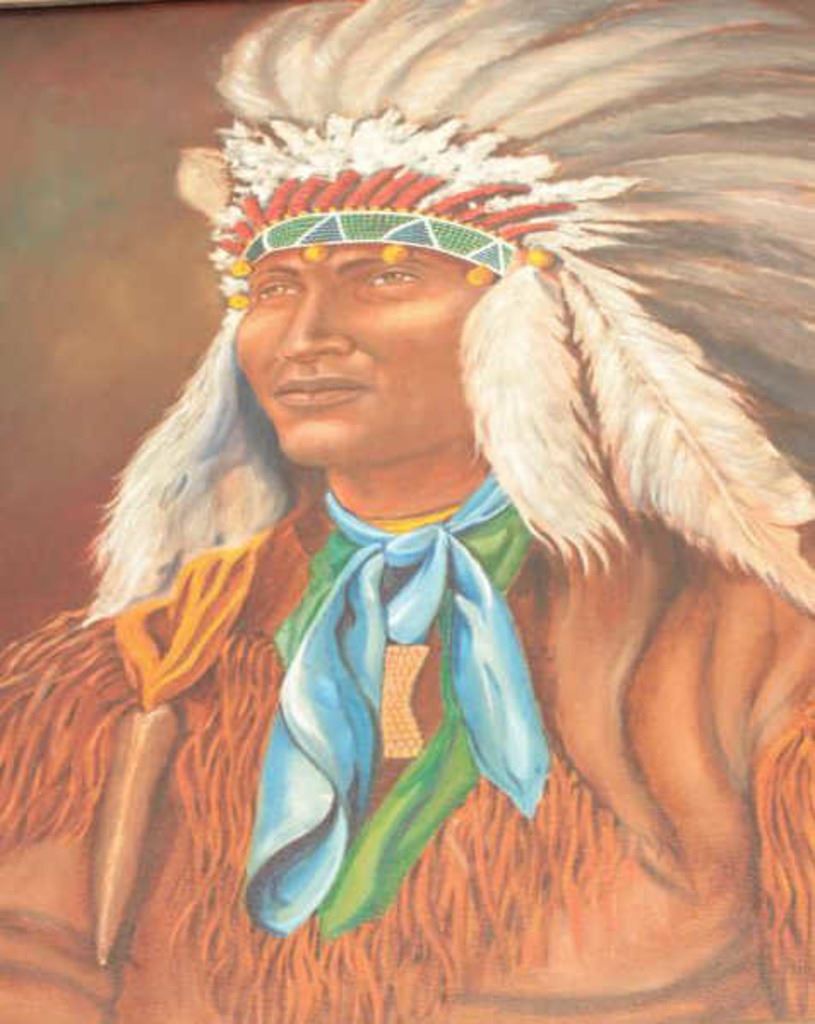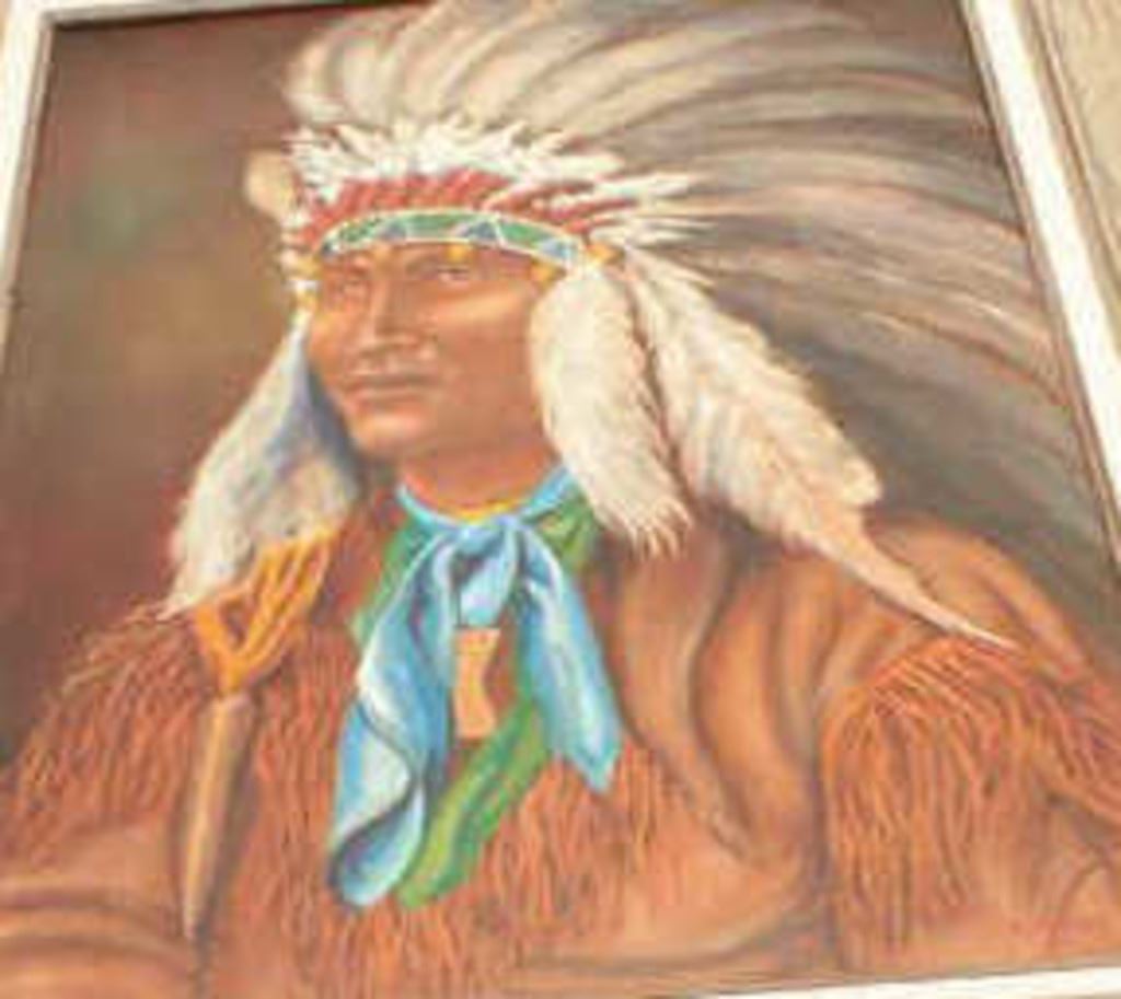 “Chief White Cloud” oil on canvas signed L.R. Gabriel; approximately 31” x 25”. From the estate of Elmer E. Taylor. Est.: $150-$300.