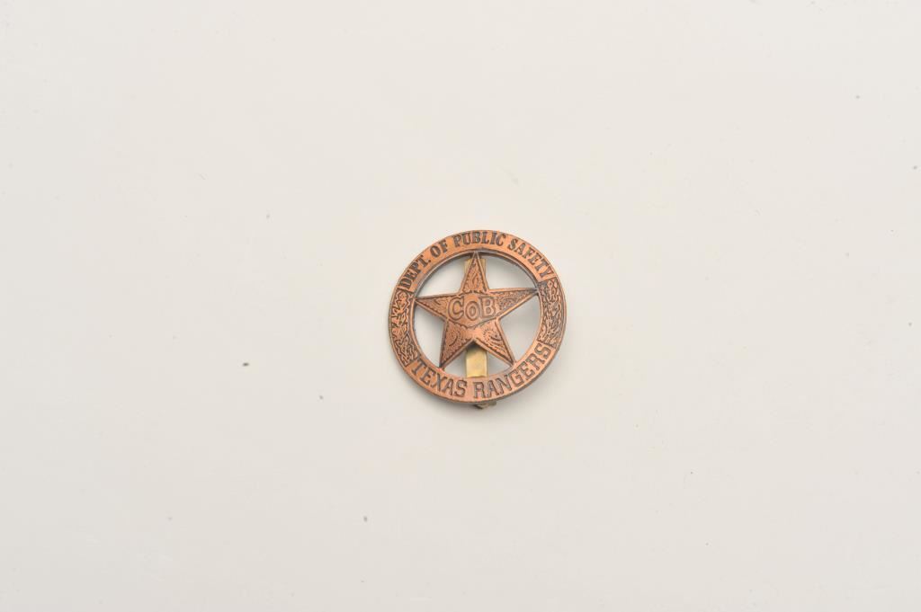 Copper 5 point cut out Dept. of Public Safety Texas Rangers Co B badge (no hallmark). Est.: $200-$400.