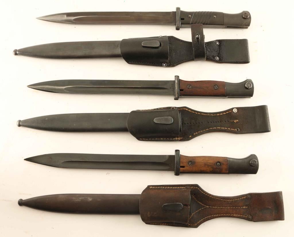 (1) WKC marked matching blade and scabbard and leather frog with bake a lite grips(1) 41CUL marked mismatched scabbard and blade with wood grips and leather frog (1)S-172K marked mismatched blade and scabbard with wood grips and leather frog.