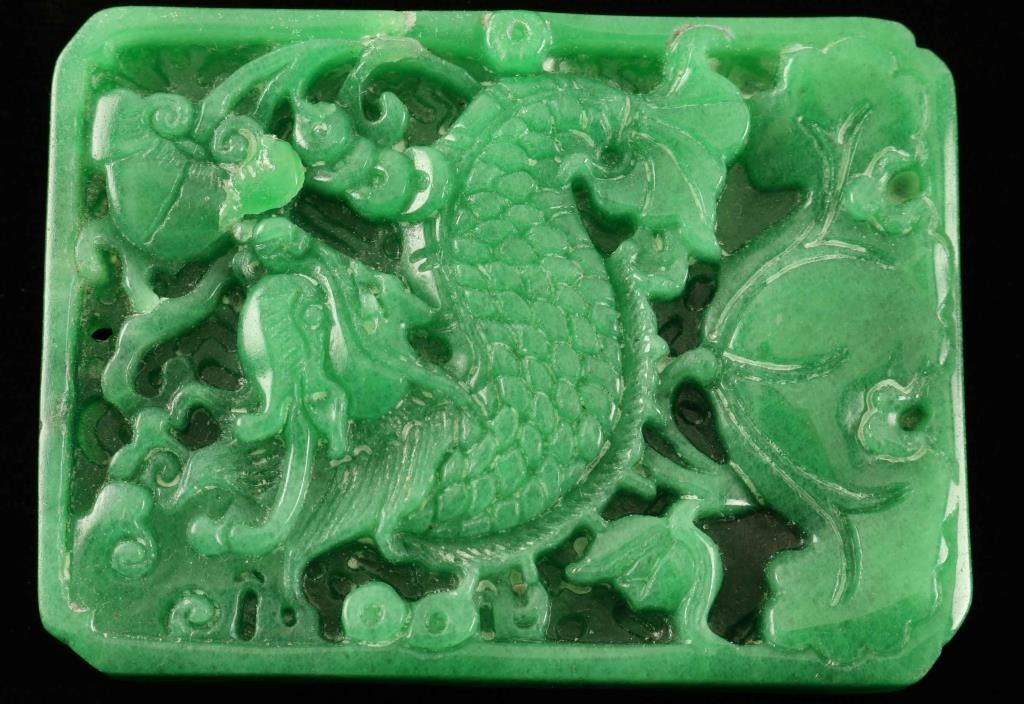 of Chinese origin in jade family. Shows repair or crack. Fine carving, from the Ashby Mansion collection purchased ambassador hotel auction in LA.