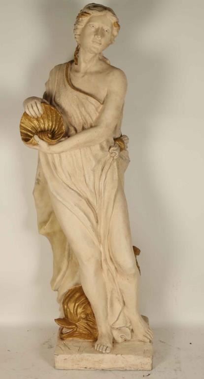 Fiber Glass With Textured Finish, Lady Holding A Gold Shell, 62"Hx20"W