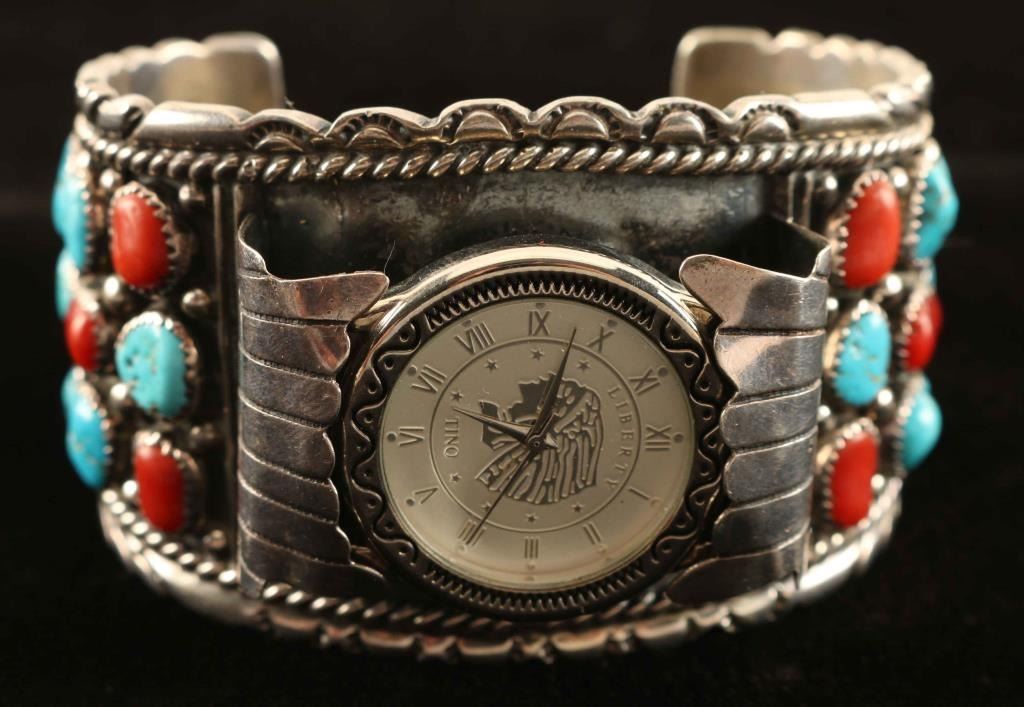 indian jewelry watch bracelet signed sterling with S-arrow marking and Tino watch with indian head.