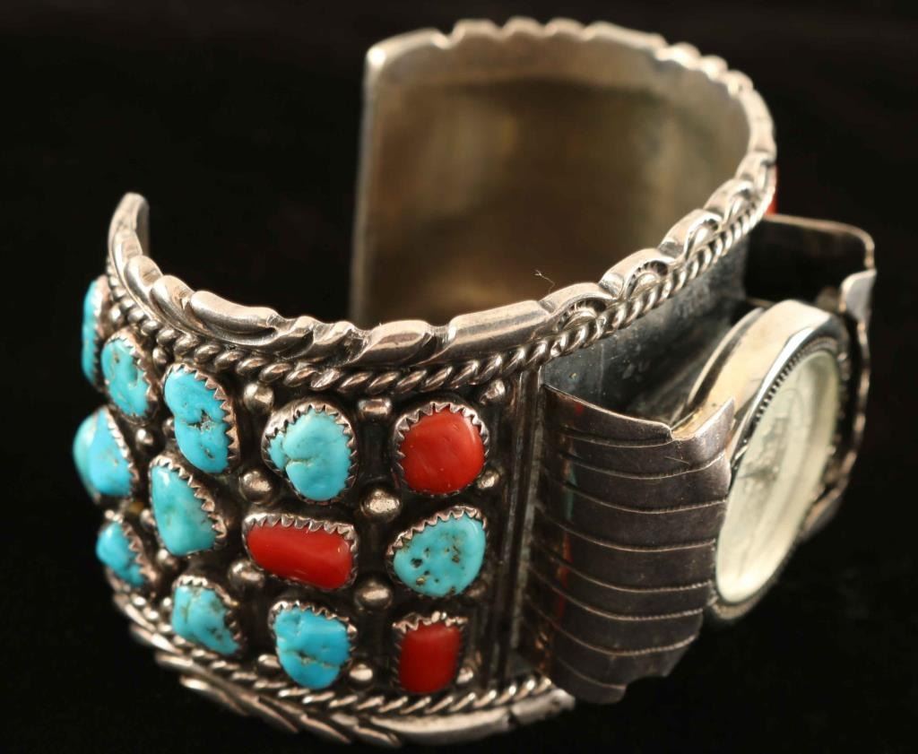 Lot 1173 1970's Vintage Turquoise & Coral Inlaid