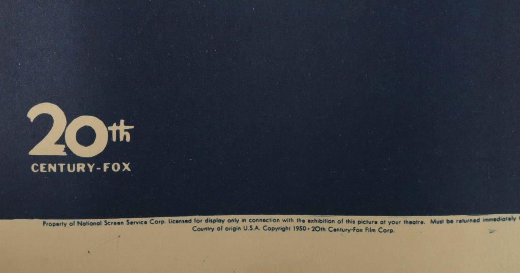 Poster mounted on canvas circa 1950. Reads 'When Tomahawk and Carbine Split the West Asunder...James Stewart in Broken Arrow, color by Technicolor'. Some damage to edges on original poster. Overall measures 23 3/8"l x 37 1/2"w.