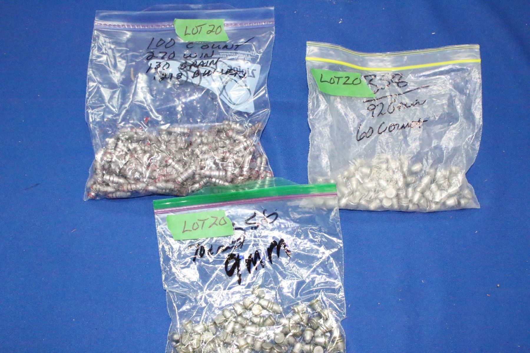 Lot 20 Bullets: 358, 92 gr. (60 count); 356 Sized 9mm (70 count) & 270 Winchester, .278, 130 gr. (100 coun