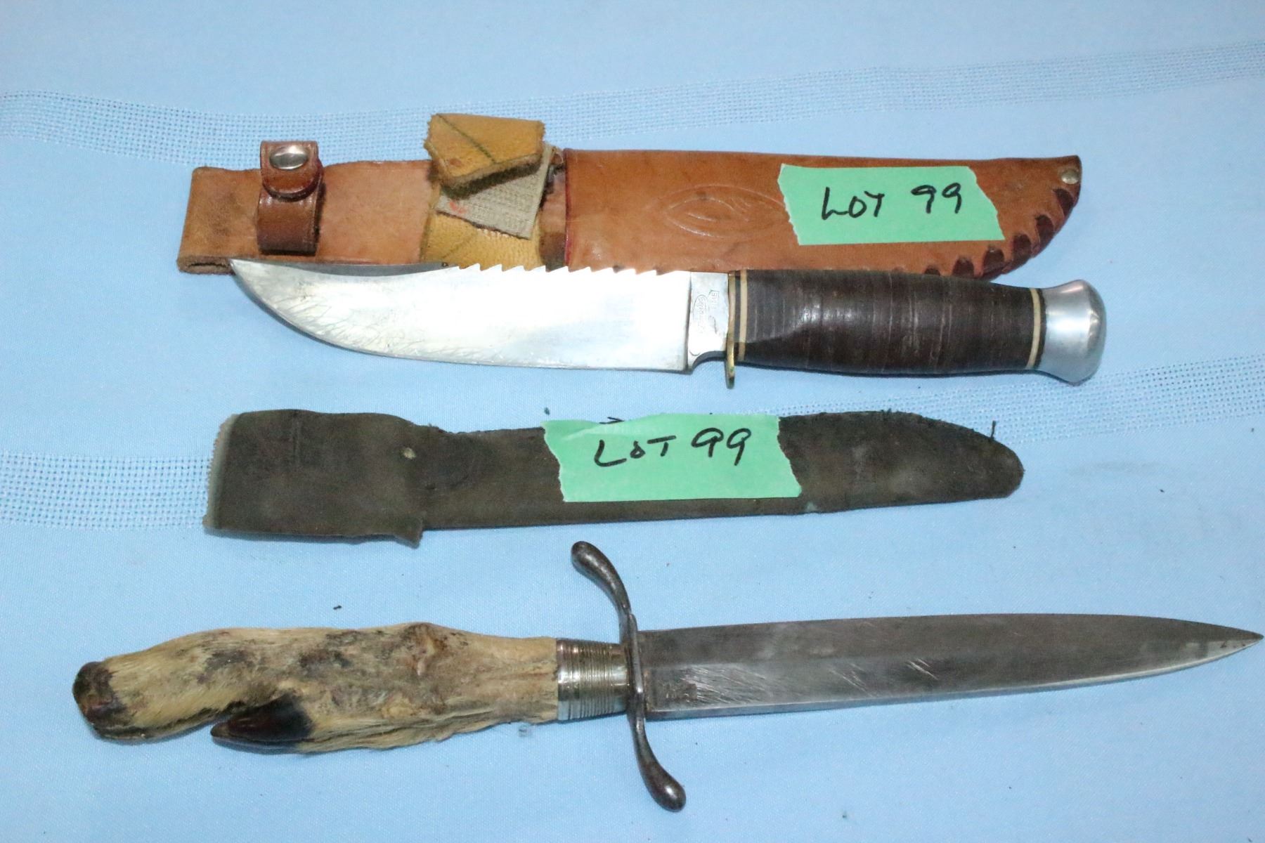 Lot 99 Premier Hunting Knife (Germany), 5 1/2" Blade w/Sheath & a Dagger with a Hoof Handle, 5 1/2" Blade