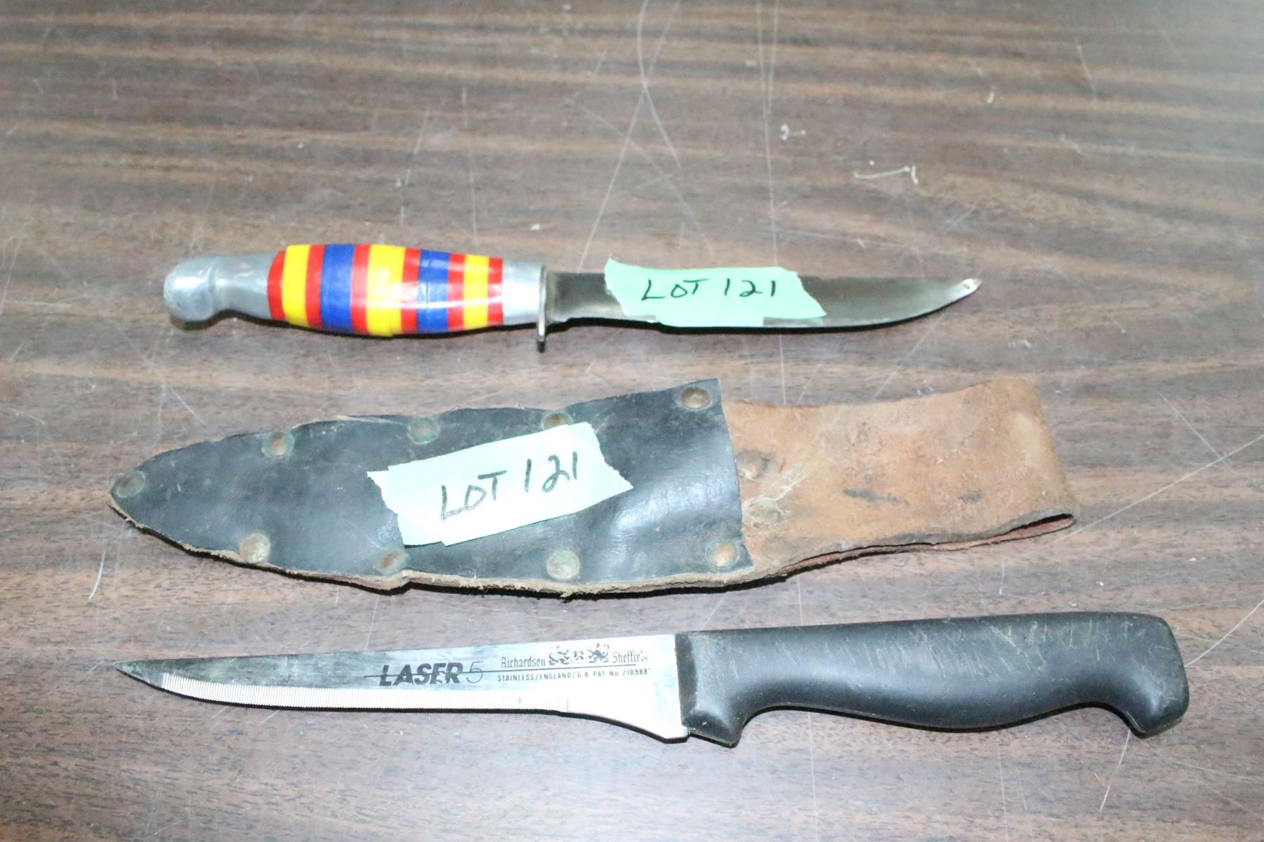 Lot 121 Richardson, England - Fileting Knife w/Sheath & a Handmade Hunting Knife w/5 1/2" Blade and Colorful