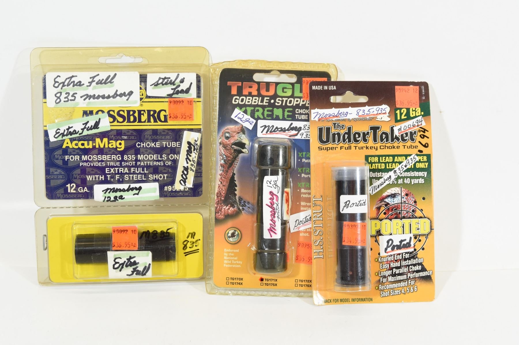 Mossberg Choke tubes for 12 ga. model 835 & 935 1) Undertaker ported super full turkey choke tube, lead & copper only 2) Accu-Mag for 835 models only, xtra full, with T, F, Steel shot 3) TruGlow Gobble Stopper Xtreme choke tube